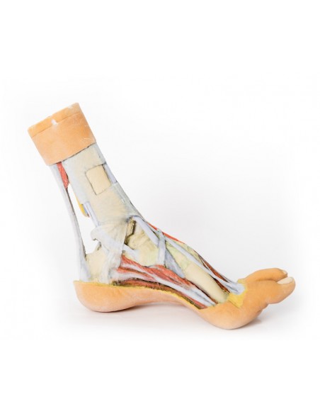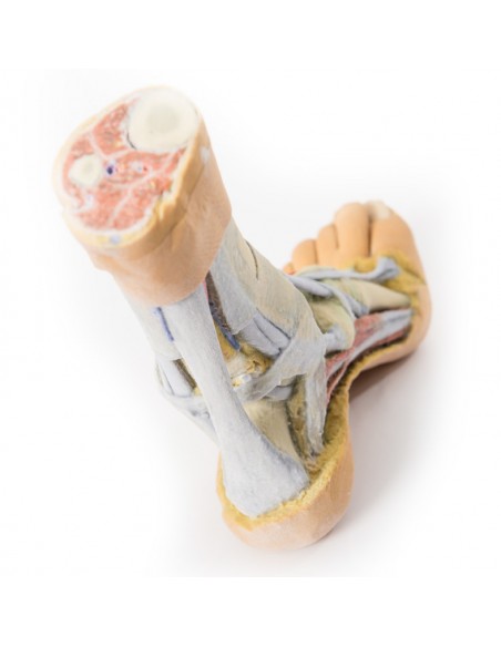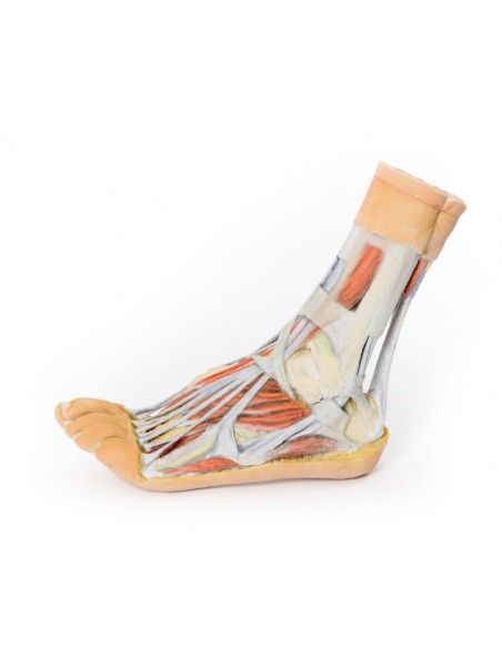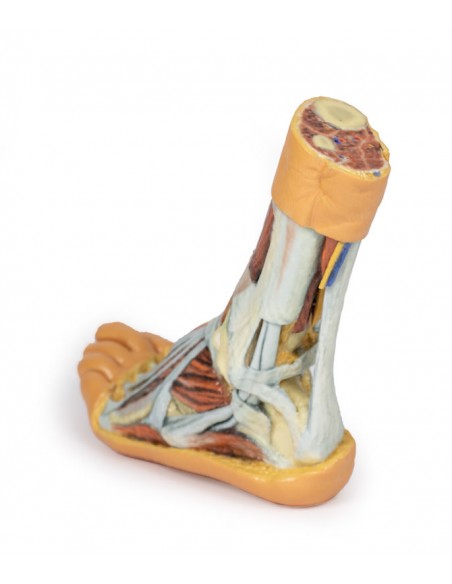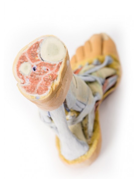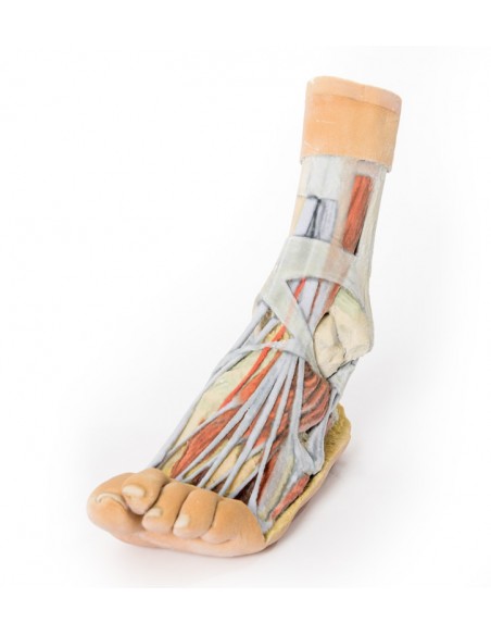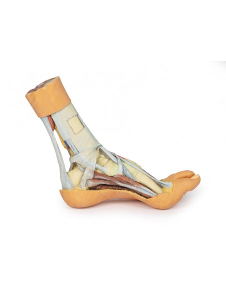 Questo modello di dissezione stampato in 3D riproduce una dissezione mista superficiale e profonda di una gamba e di un piede distali sinistri.