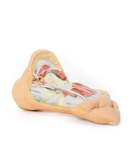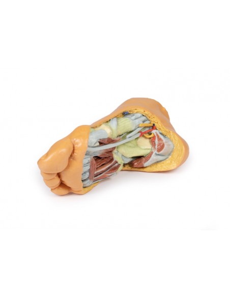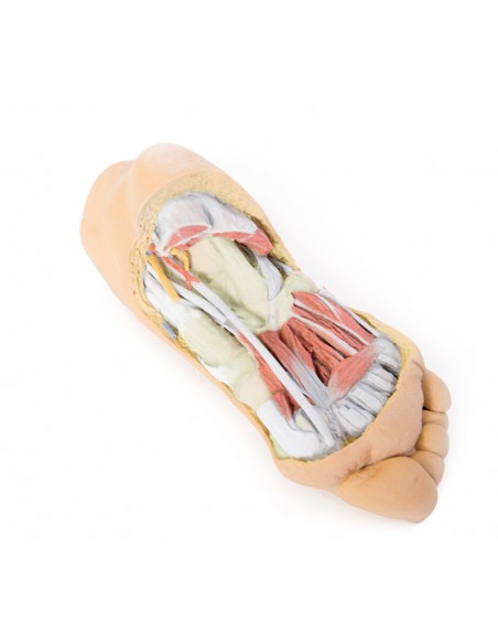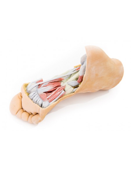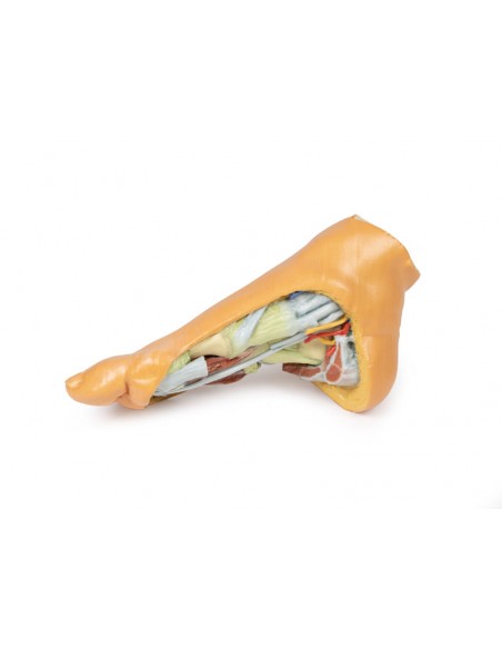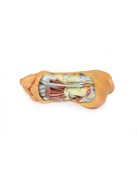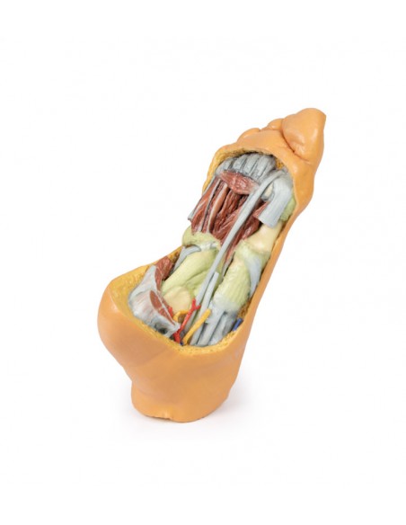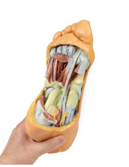 Questo modello di dissezione stampato in 3D fornisce una vista completa delle strutture plantari profonde di un piede destro.