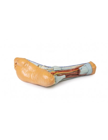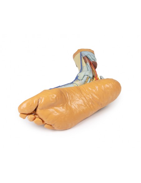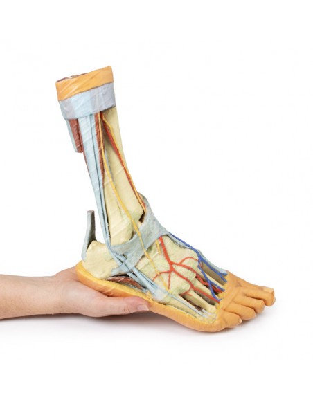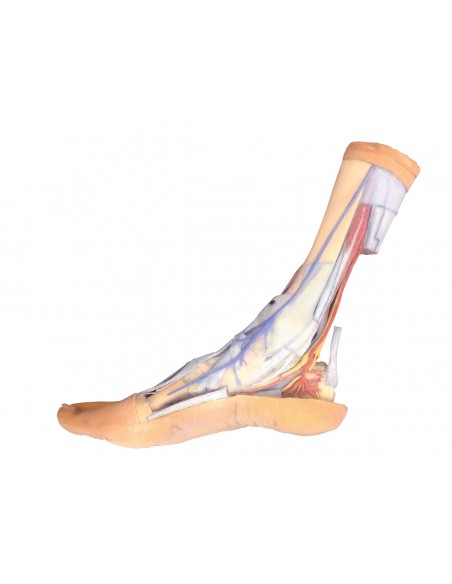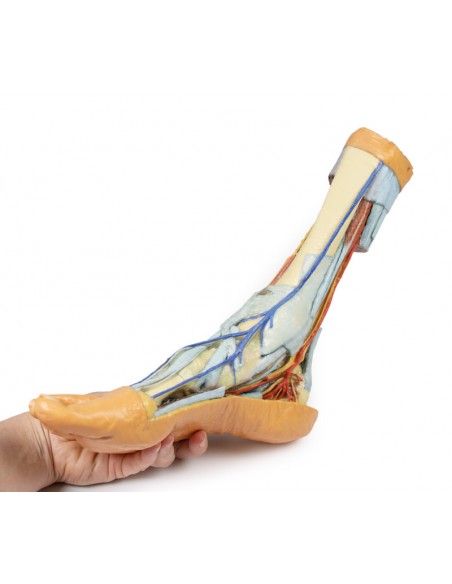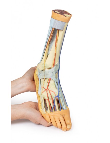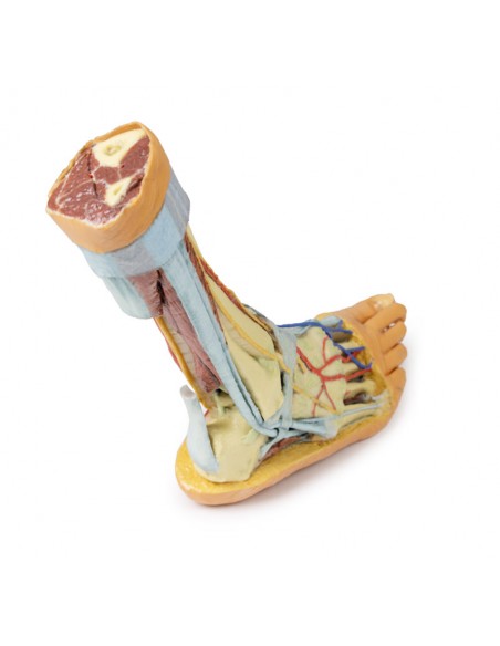 Questo modello di dissezione stampato in 3D presenta strutture sia superficiali che profonde di una gamba e di un piede distali destri.