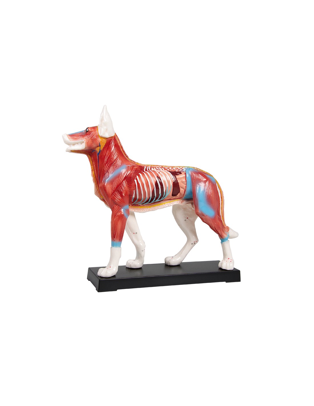 Il modello è la riproduzione di un cane di circa 30cm, con la rappresentazione dei punti di agopuntura, muscolatura e organi interni, ed è conforme alle specifiche della medicina tradizionale cinese TCM