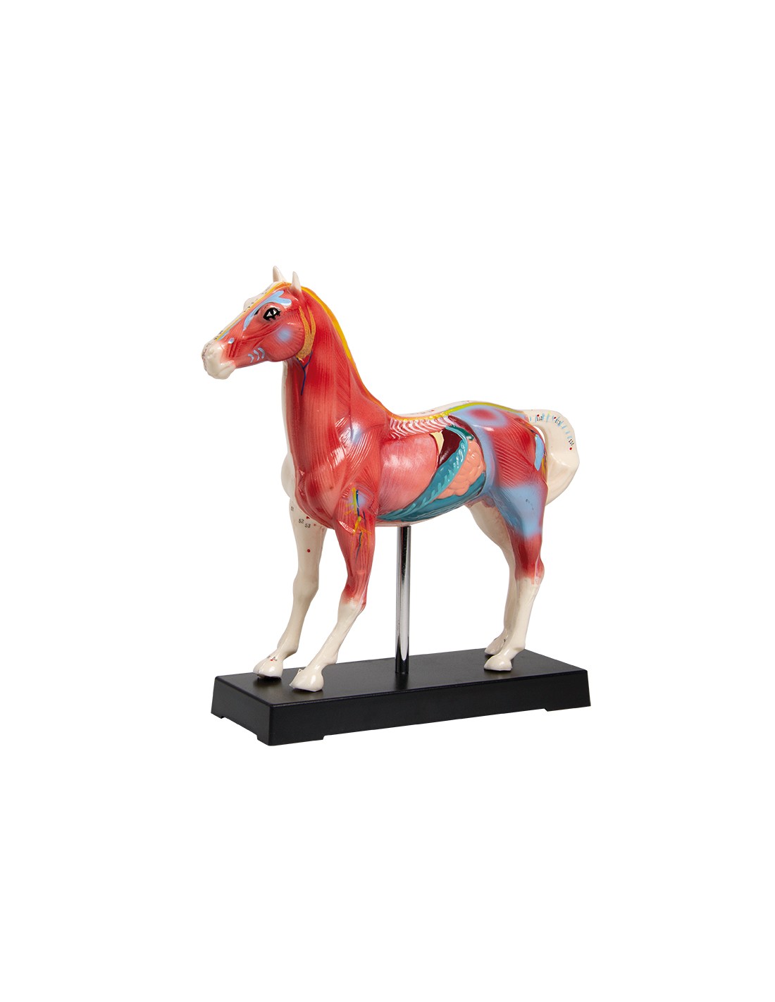 Il modello è la riproduzione di un cavallo di circa 25 cm, con la rappresentazione dei punti di agopuntura, muscolatura e organi interni, ed è conforme alle specifiche della medicina tradizionale cinese TCM