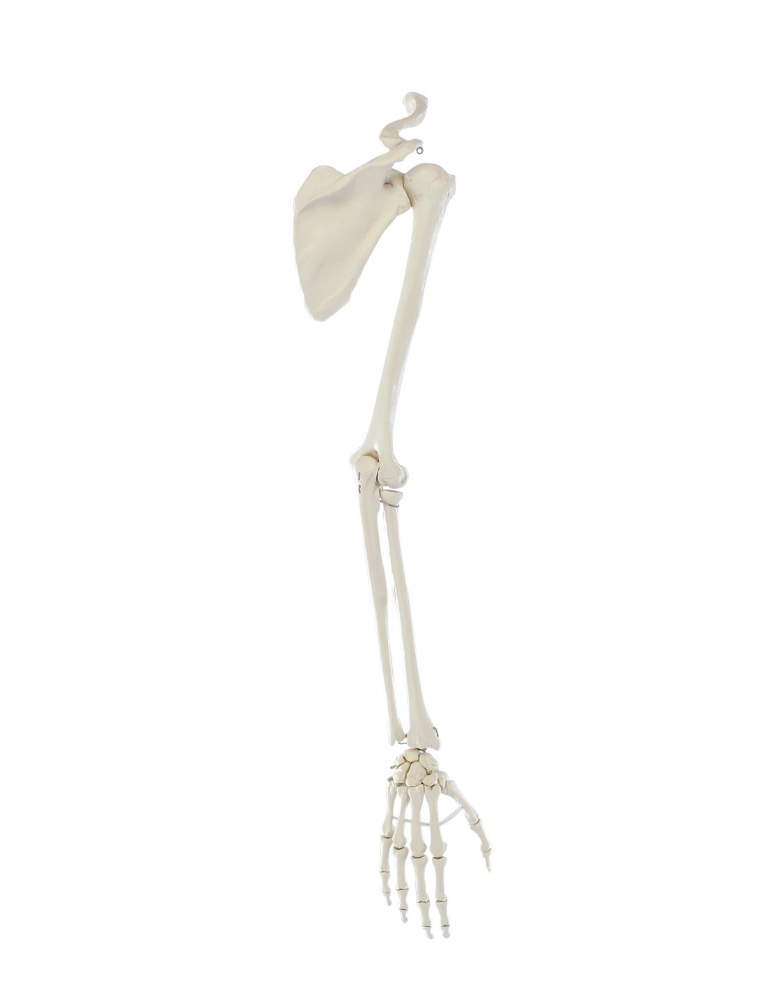 Modello anatomico didattico di scheletro del braccio con cingolo scapolare a grandezza naturale.