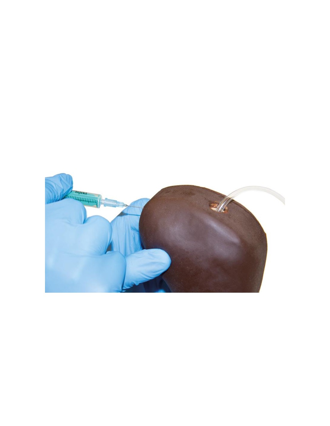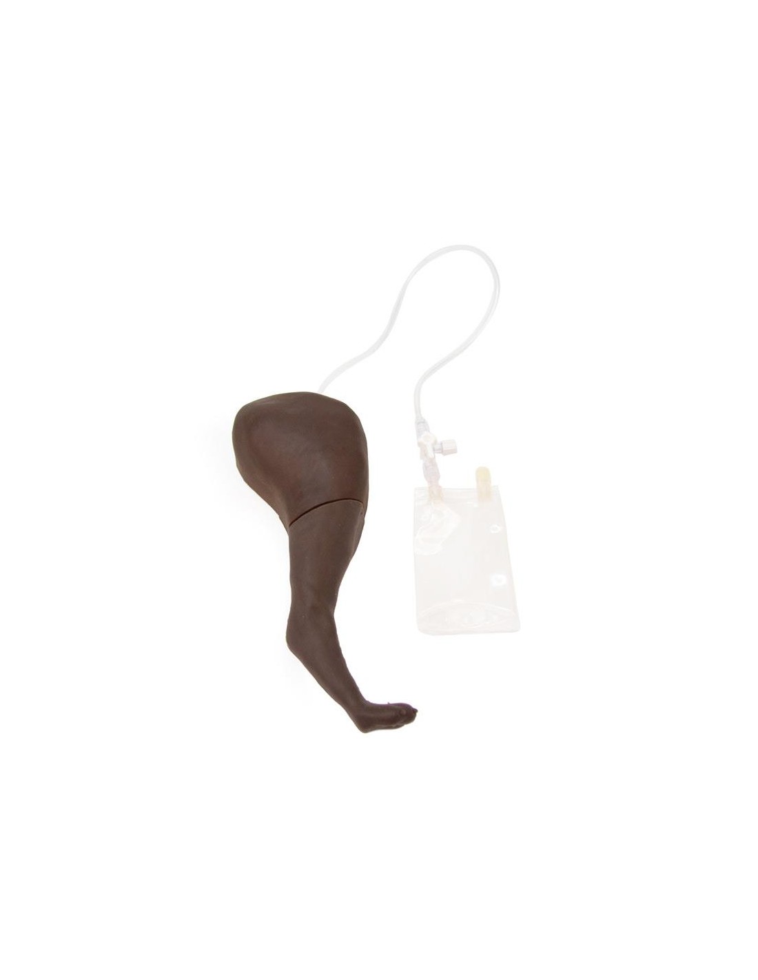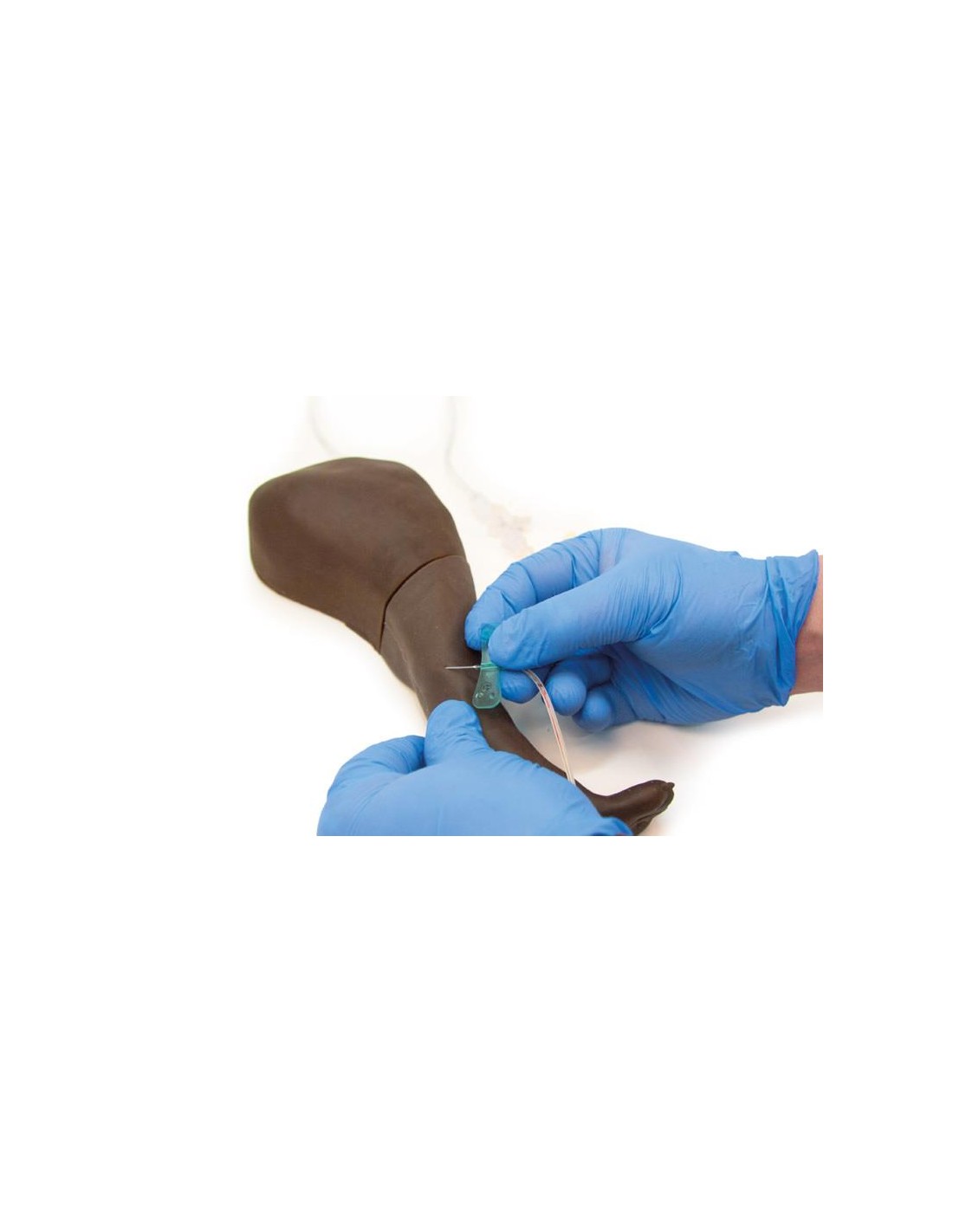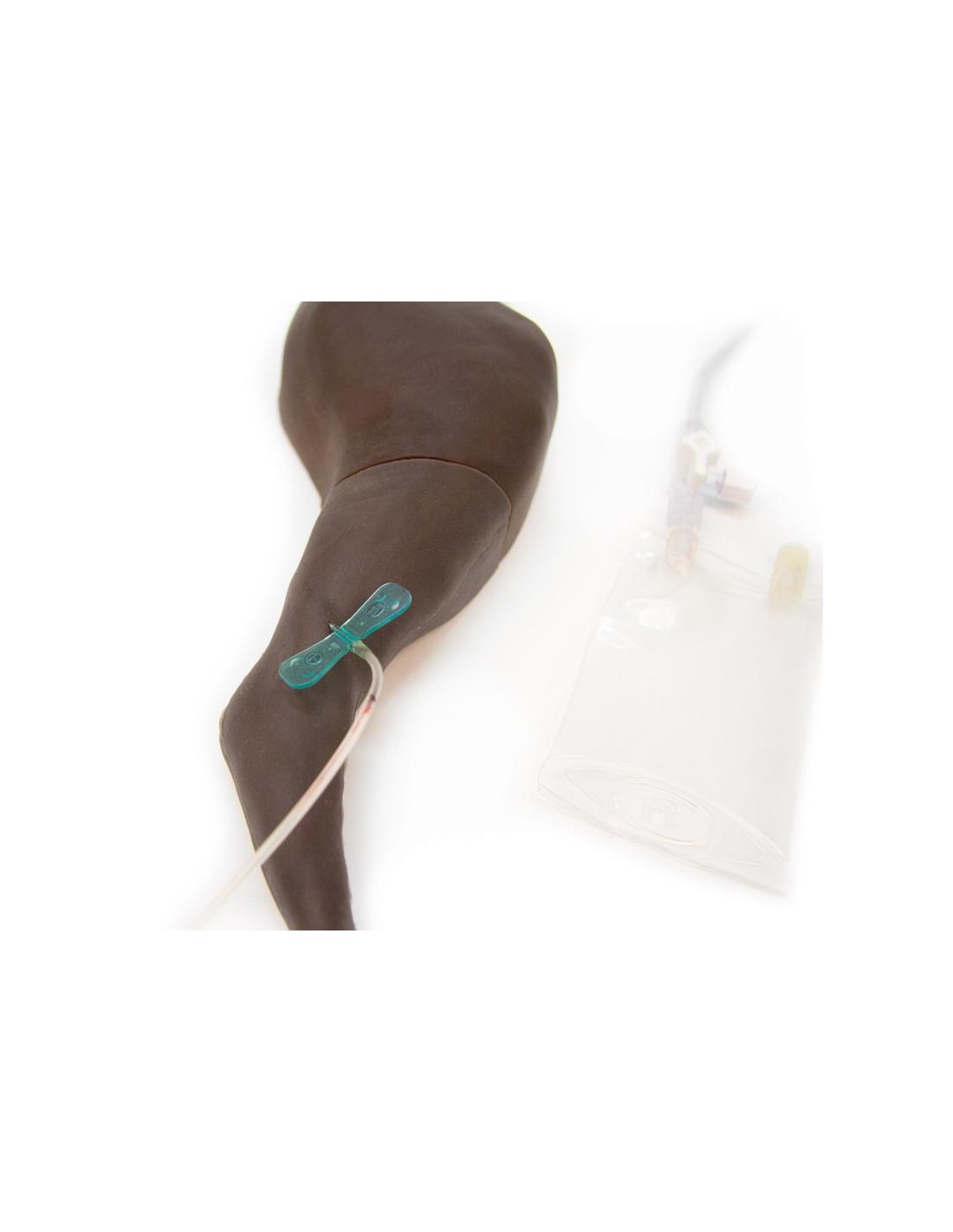. Ogni modello completo contiene : un trainer per la venipuntura/flebo della parte inferiore della gamba, un trainer per l'iniezione nella coscia, un tubo per flebo e una sacca per flebo preriempita con il nostro sangue simulato.