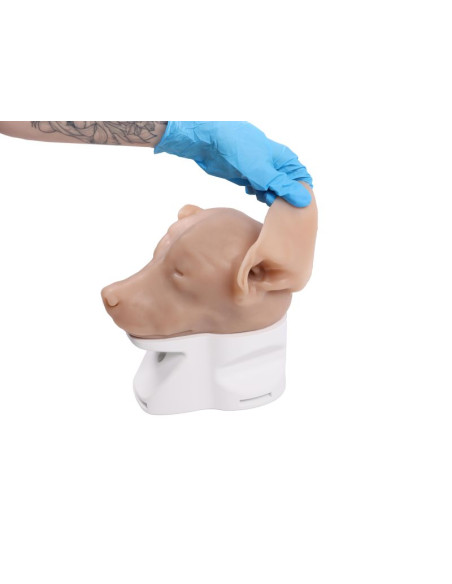 Il Simulatore di Otoscopia Veterinaria è un modello avanzato progettato per addestrare i veterinari a eseguire correttamente un esame dell'orecchio nei cani. Questo simulatore offre un'esperienza di addestramento realistica e dettagliata, fondamentale per acquisire competenze pratiche in otoscopia.