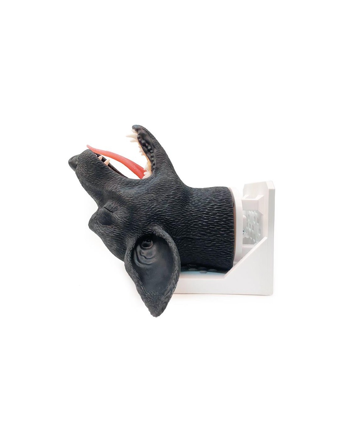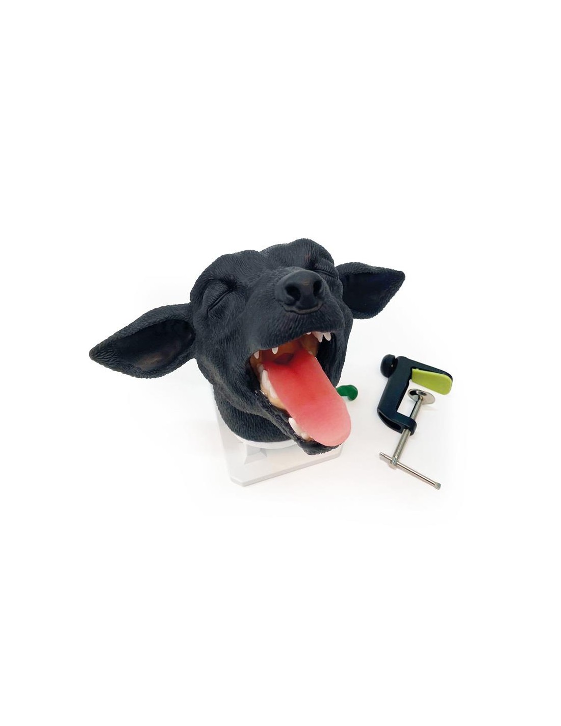 Manichino didattico veterinario di testa di cane per l'addestramento alla pratica di intubazione.