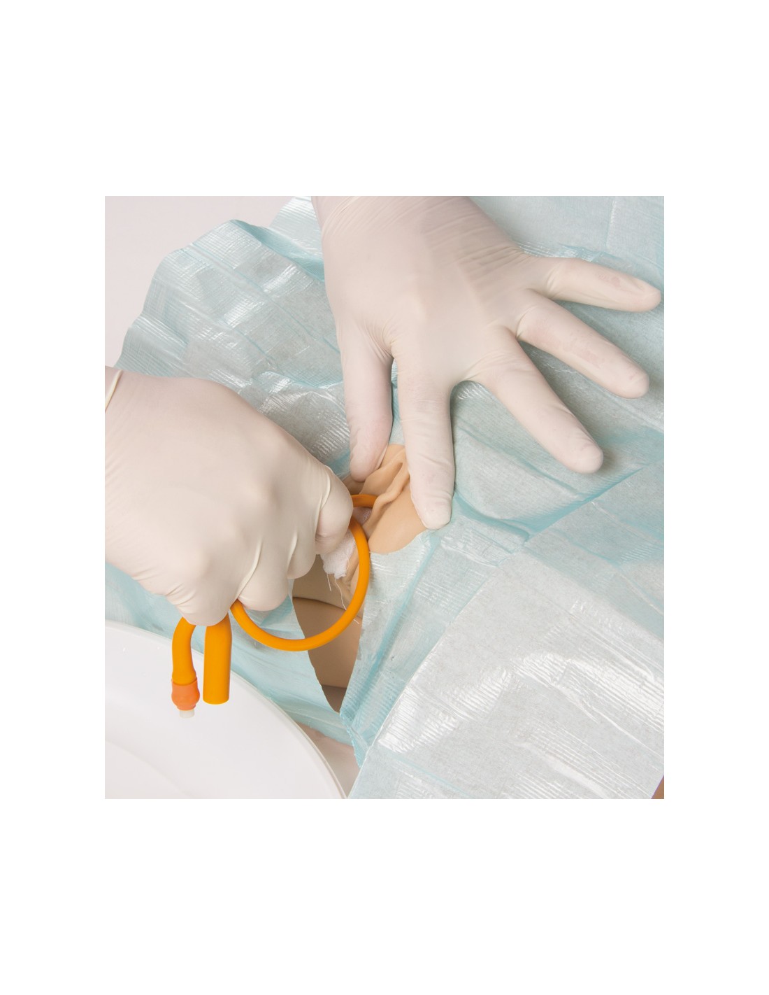 La forma della vescica è stata creata per evitare qualsiasi resistenza irrealistica durante l'inserimento del catetere e impedire agli studenti di provare a “palpare” la corretta profondità di inserimento.