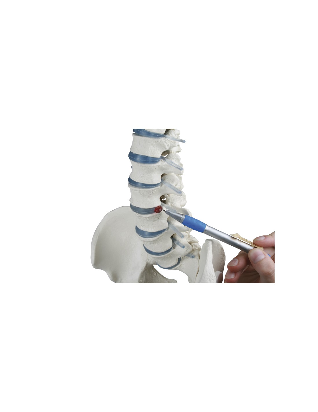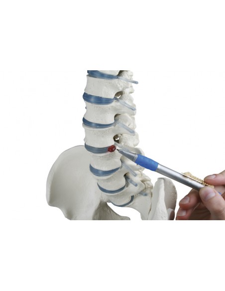 E' un modellino anatomico di colonna vertebrale particolarmente indicato per un uso molto intensivo, ideale per l'insegnamento.
