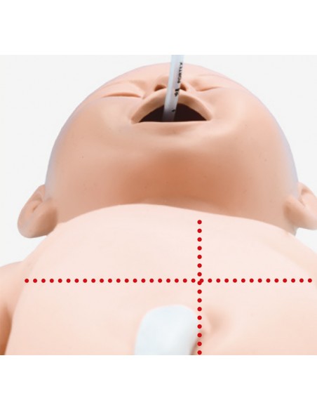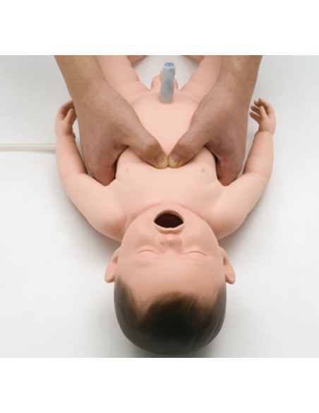 Questo simulatore medico di primo soccorso è un neonato a dimensione naturale, con possibilità di intubazione e ventilazione in maschera, è possibile praticare la compressione del torace.
