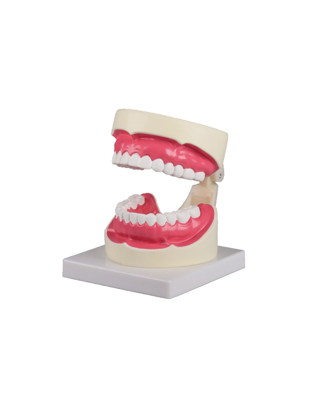 Modello anatomico della dentatura umana, ingrandita di 1,5 volte, per spiegare la corretta igiene orale