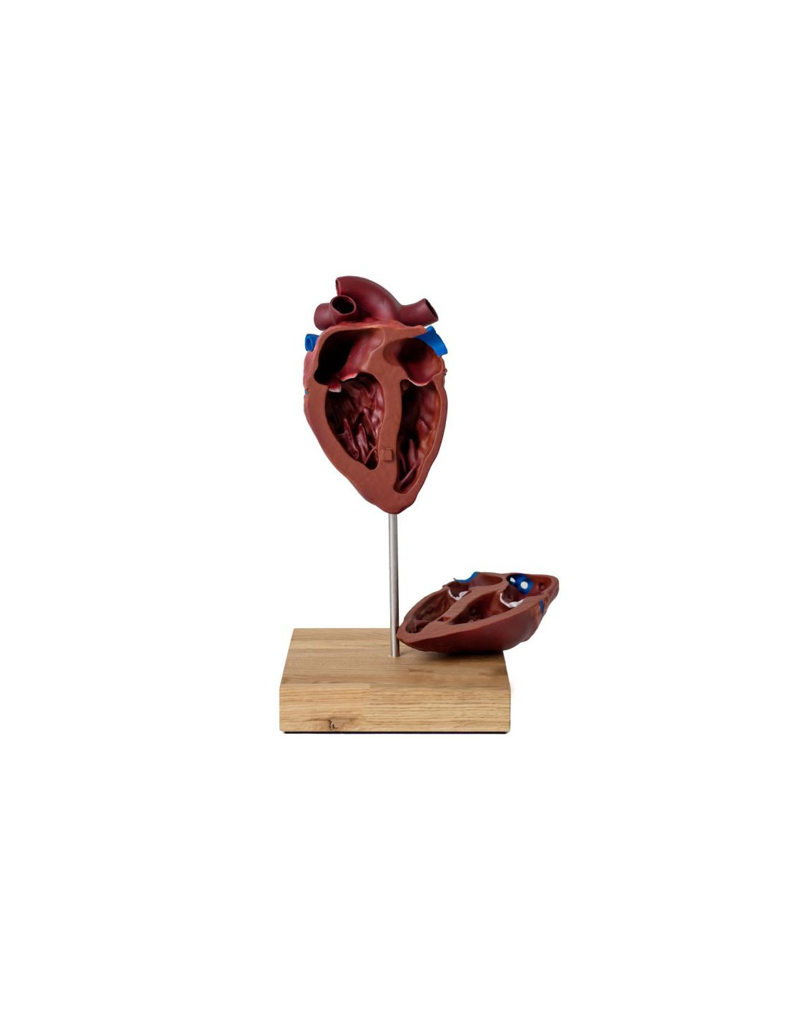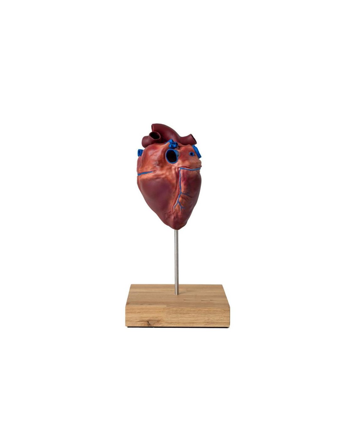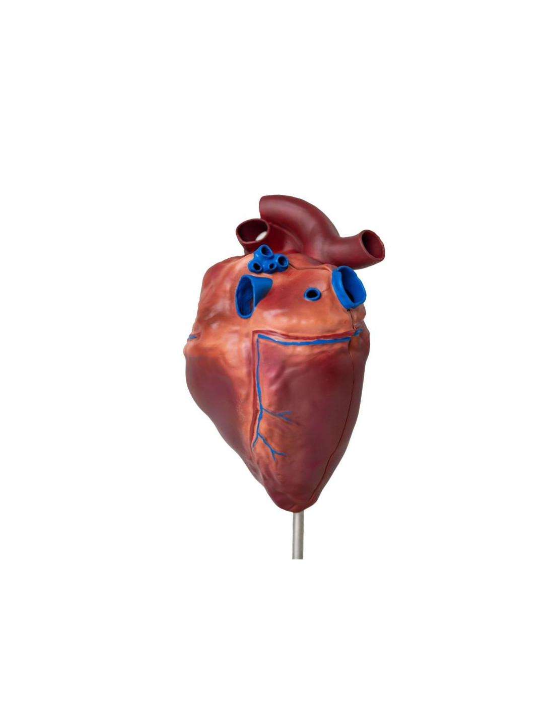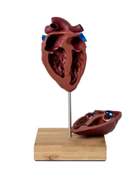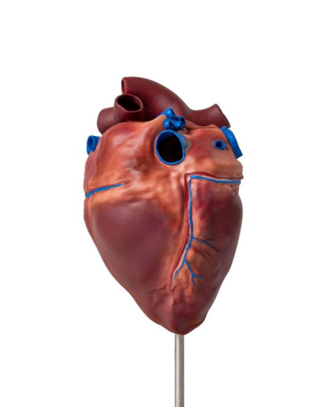 Un modello in scala ridotta del cuore di un cavallo. Mostra la corretta anatomia del cuore di un cavallo, comprendente: 2 atri, ventricoli, orifizi dei principali vasi sanguigni. Il modello è realizzato in plastica dura.