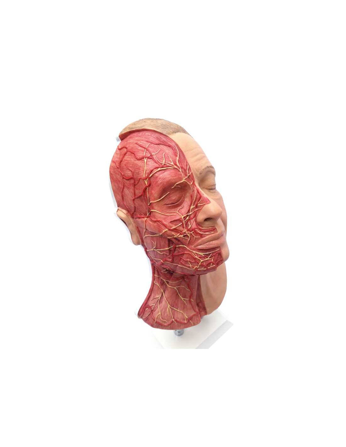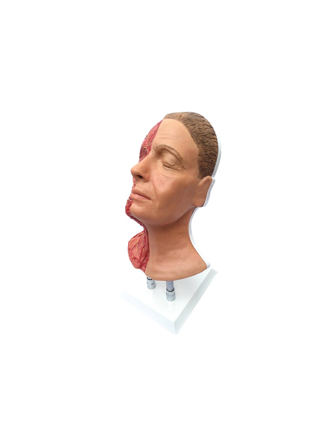 Questo modello specifico per l'addestramento all'esecuzione di iniezioni facciali è realizzato in silicone protesico polimerizzato al platino, per garantire lo standardi di qualità più alto possibile ed una sensazione tattile realistica.