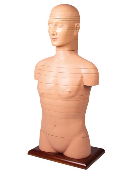 Modello anatomico senza sesso a grandezza naturale del torso umano, sezionato in 24 fette.