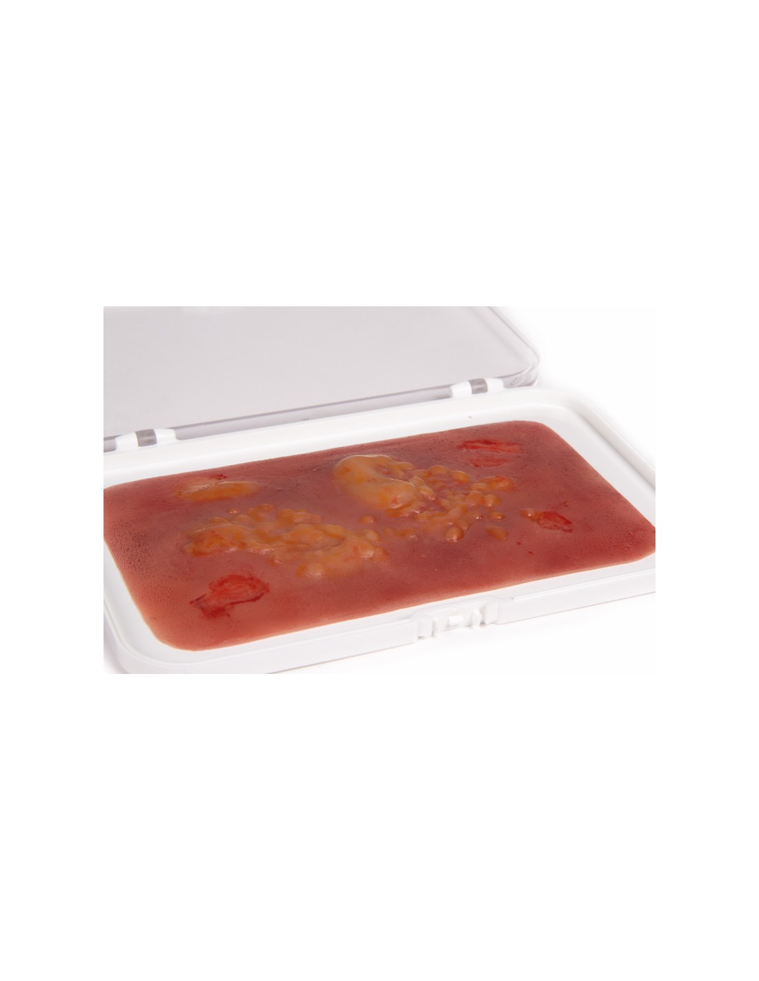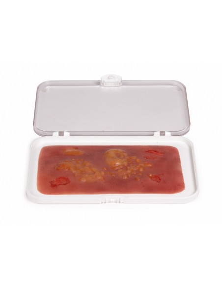 Questo moulage è realizzato in materiale delicato sulla pelle e aderisce da solo sulla pelle di un paziente standardizzato, di un manichino o sulla base in dotazione.
