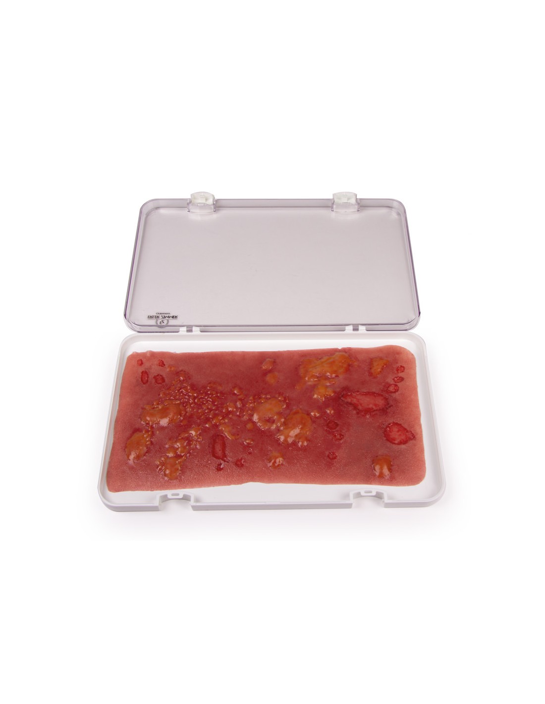 Questo moulage è realizzato in materiale delicato sulla pelle e aderisce da solo sulla pelle di un paziente standardizzato, di un manichino o sulla base in dotazione.