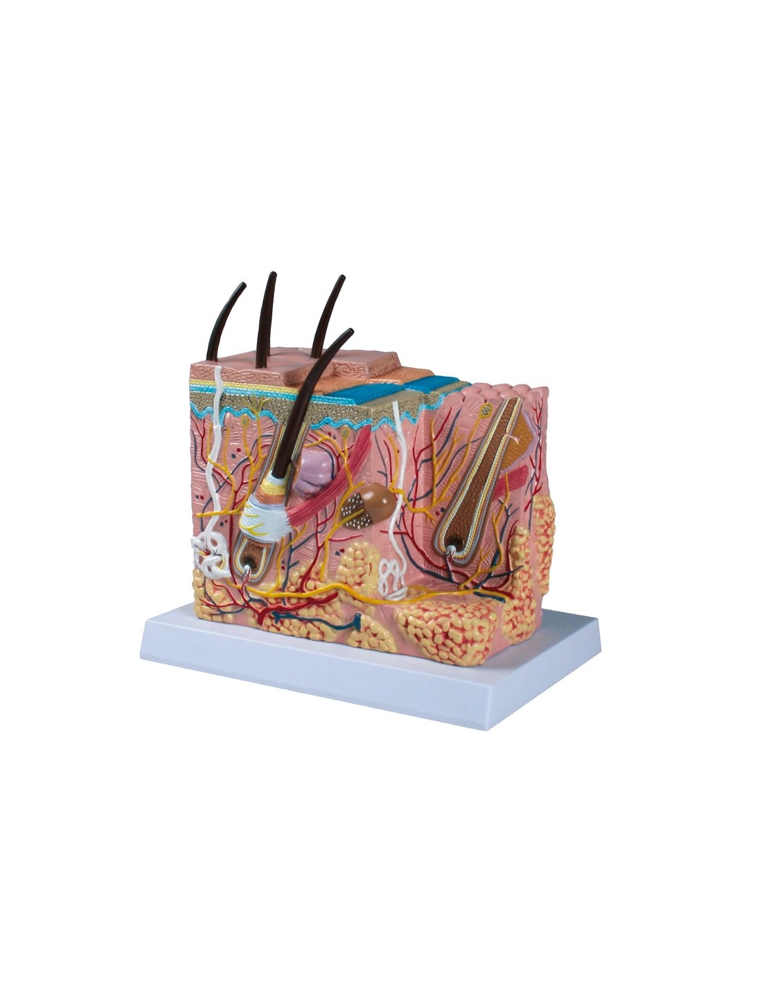 Questo bellissimo modellino anatomico a grandezza naturale è la riproduzione di uno strato di pelle umana ingrandito di circa 50 volte.