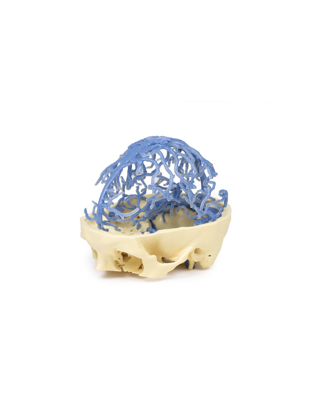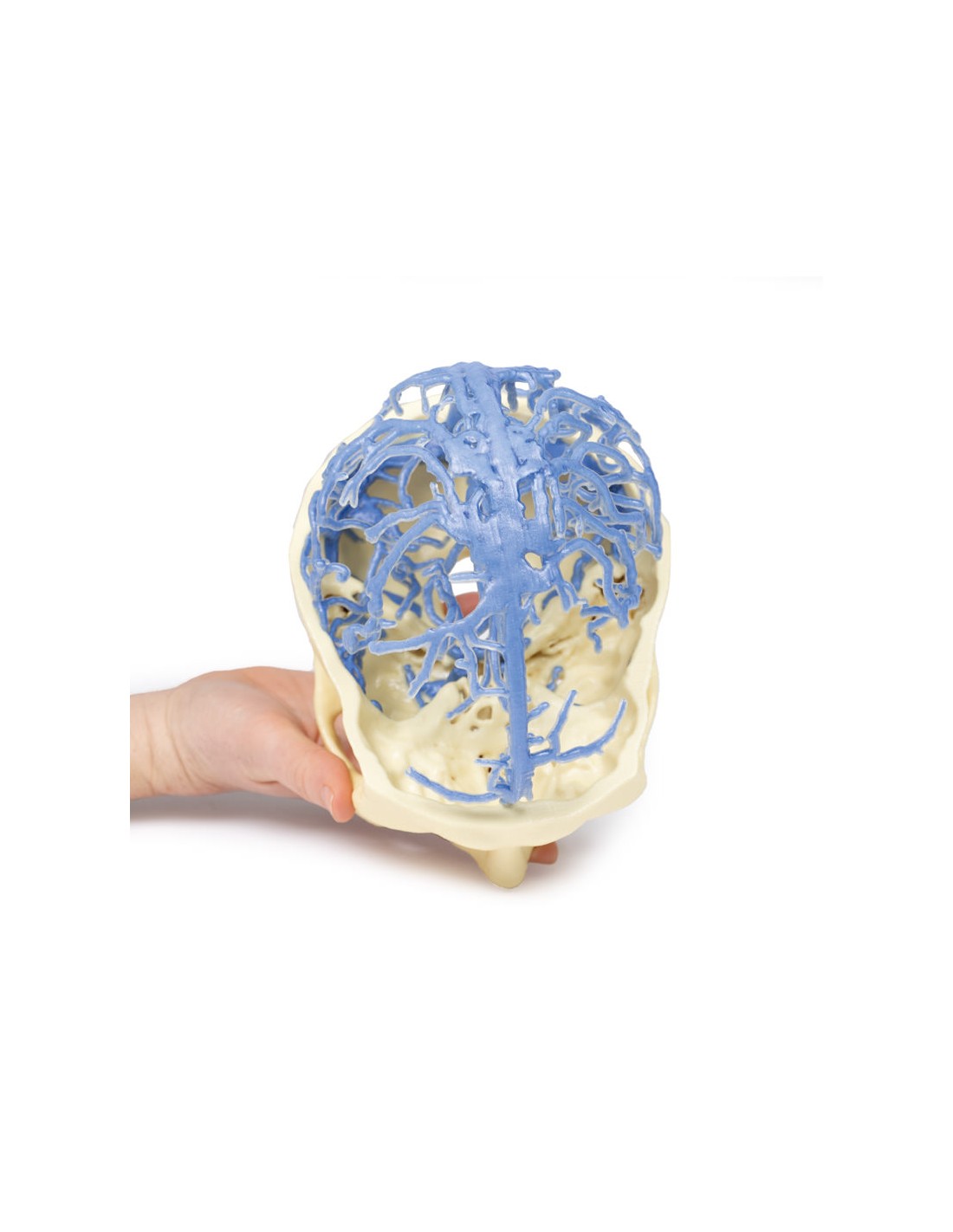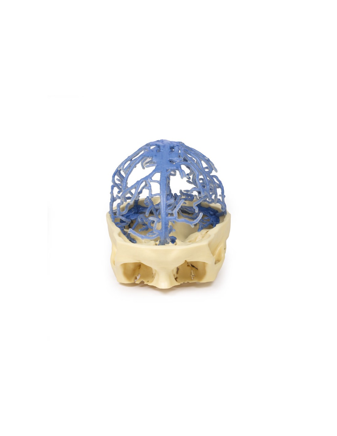 Questa stampa 3D presenta lo stesso set di dati che è alla base del nostro Circle of Willis e delle stampe 3D della circolazione arteriosa cranica ed è derivato da un'attenta segmentazione dei dati angiografici. Qui, la rete del seno venoso durale è stata segmentata sulla base di strutture visibili dalla circolazione del mezzo di contrasto nella fase tardiva del riempimento. Di conseguenza, mentre la maggior parte dei seni è presente, la mancanza di contrasto nelle porzioni anteriori del sistema venoso significa che alcune strutture non sono così chiare nel modello come ci si potrebbe aspettare, ad esempio il seno cavernoso e il seno petroso inferiore.
