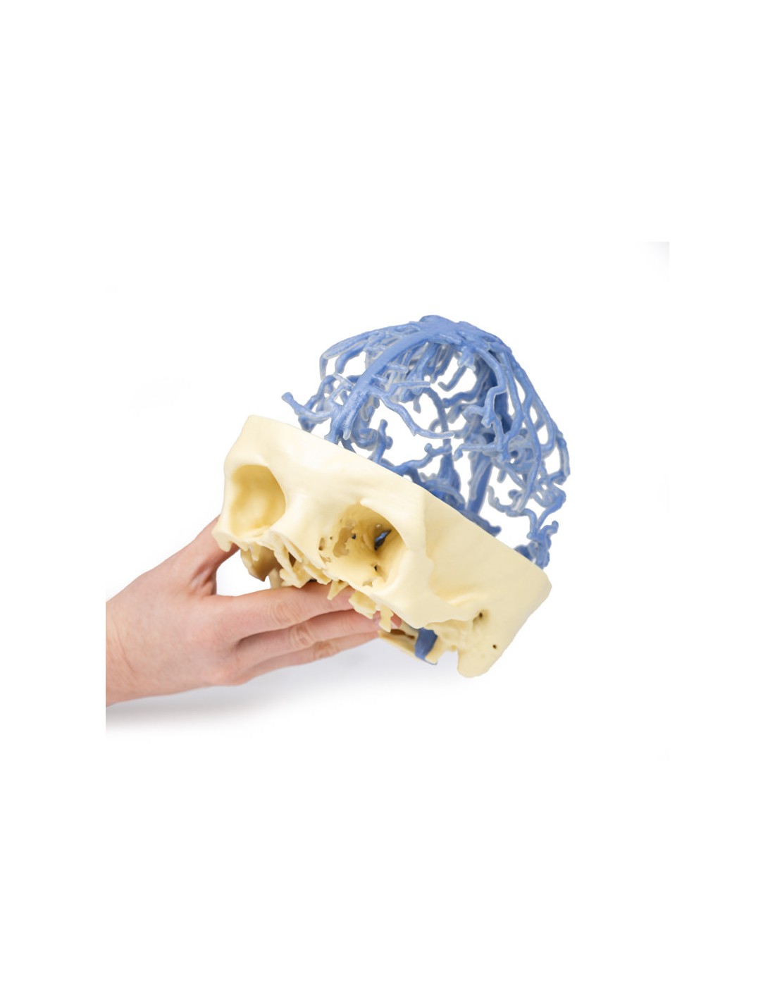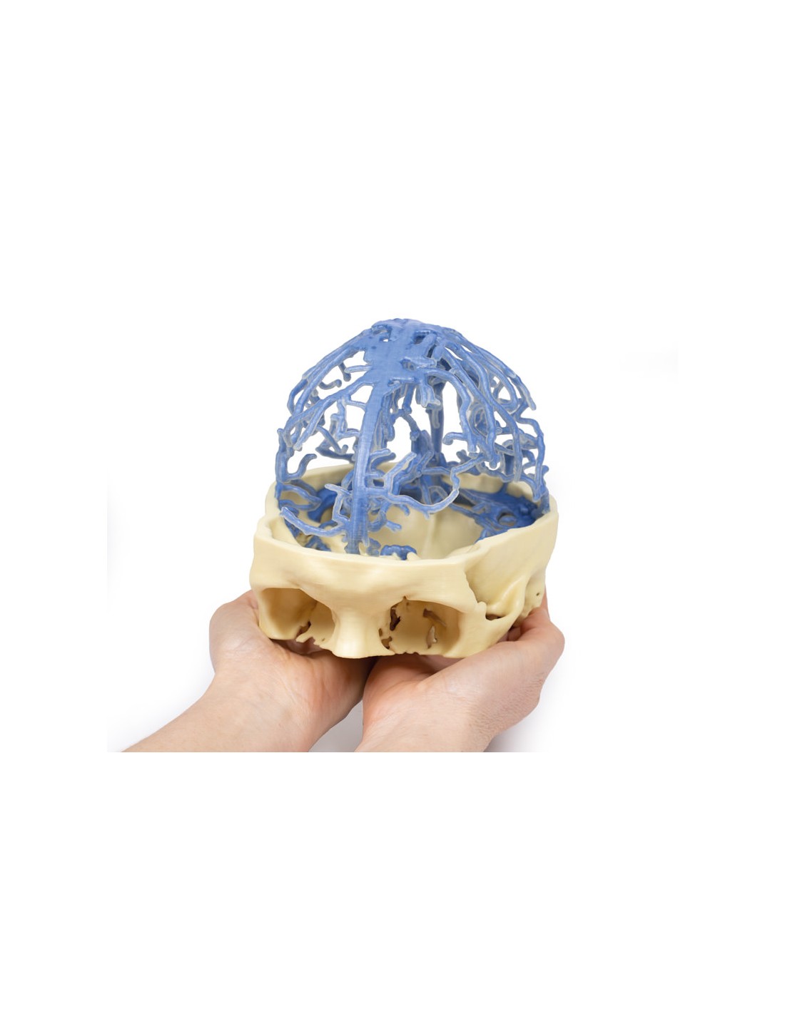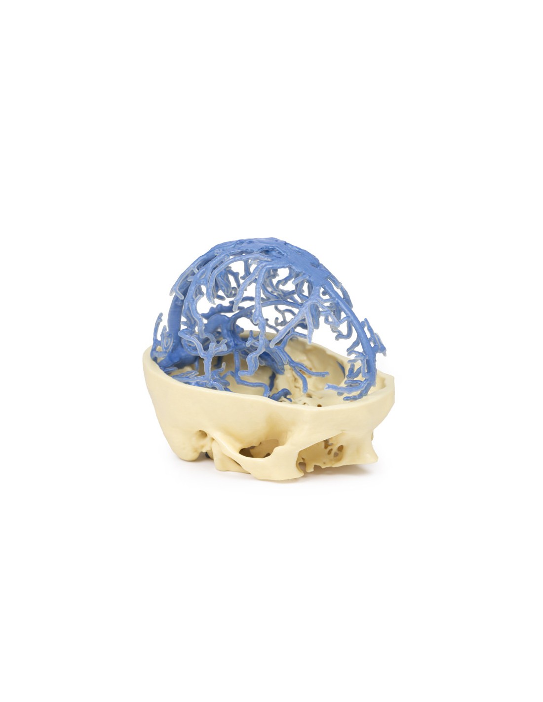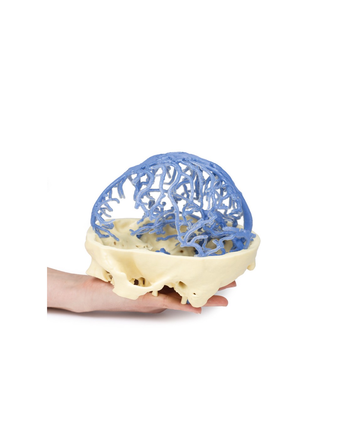 Questa stampa 3D presenta lo stesso set di dati che è alla base del nostro Circle of Willis e delle stampe 3D della circolazione arteriosa cranica ed è derivato da un'attenta segmentazione dei dati angiografici. Qui, la rete del seno venoso durale è stata segmentata sulla base di strutture visibili dalla circolazione del mezzo di contrasto nella fase tardiva del riempimento. Di conseguenza, mentre la maggior parte dei seni è presente, la mancanza di contrasto nelle porzioni anteriori del sistema venoso significa che alcune strutture non sono così chiare nel modello come ci si potrebbe aspettare, ad esempio il seno cavernoso e il seno petroso inferiore.