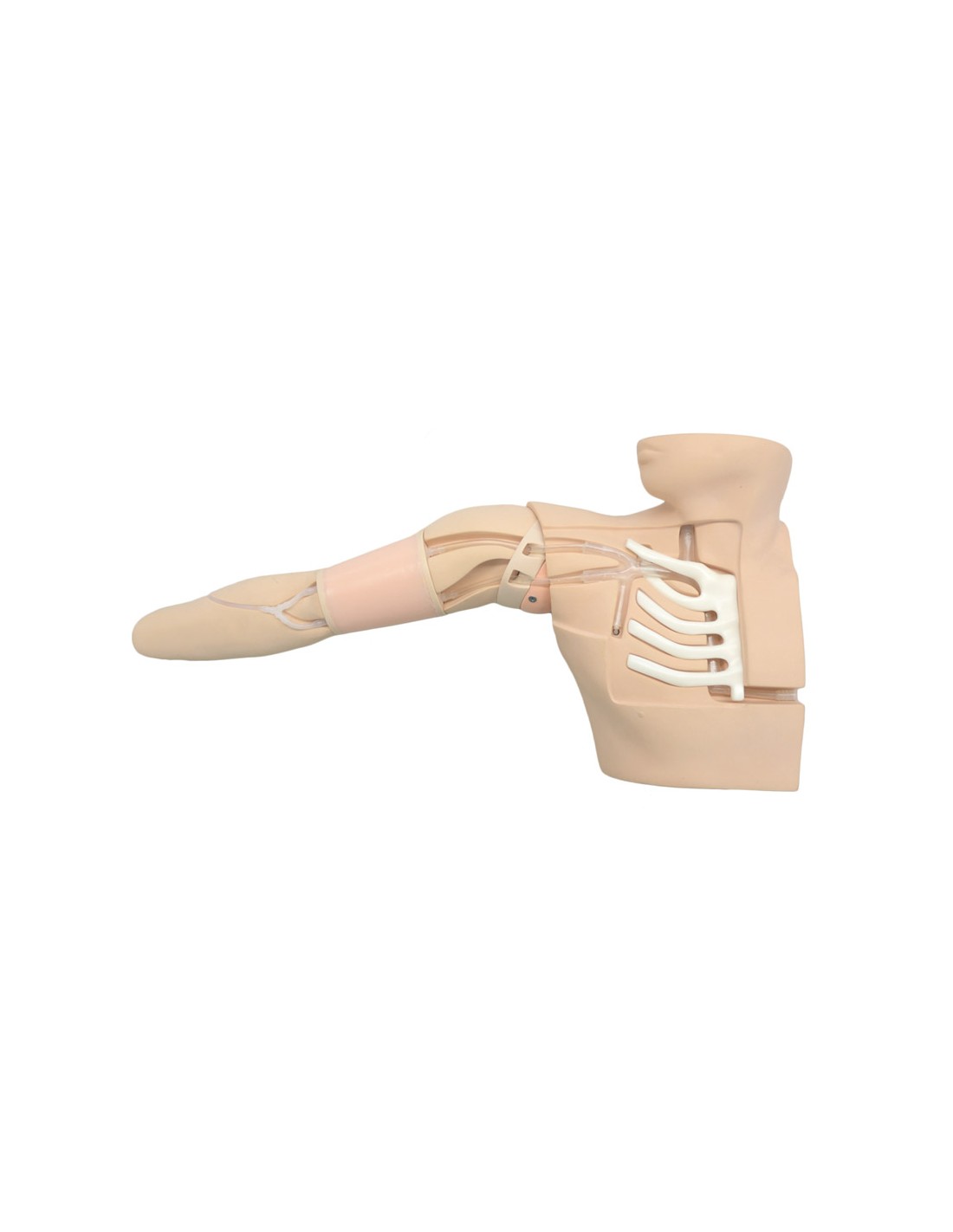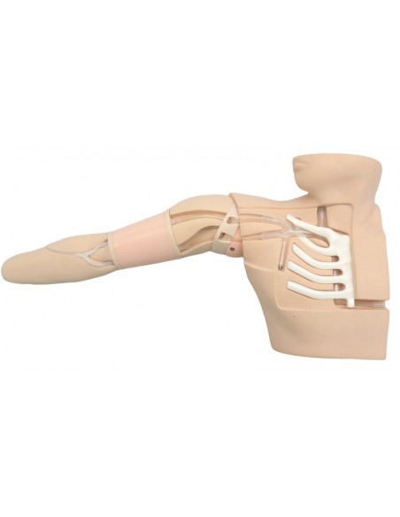 Il sito di iniezione ecografico è sostituibile. La spalla mobile consente di addestrarsi nel posizionamento del braccio per evitare possibili posizioni errate del catetere.