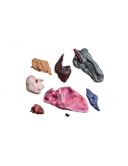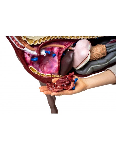 La parte destra mostra la pelle esterna dell'animale, mentre la parte sinistra presenta i muscoli del corpo e degli arti. Quando le due metà sono separate, il lato sinistro mostra il torace e la cavità addominale con gli organi staccabili, mentre il lato destro del modello mostra i principali vasi sanguigni, il cuore e la parete della cavità addominale con gli organi staccabili.